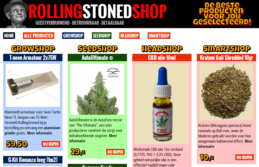 shopWij van de RollingStoned maken het jou zo gemakkelijk mogelijk. Naast al het cannabisnieuws uit binnen- en buitenland, de beste muziek, vlijmscherpe columns, de mooiste en vetste wietsoorten en do-it-yourself kweekverhalen, kun je nu ook vanuit de luie stoel winkelen op de website!