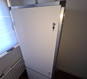 Ik had de deuren met een uurtje vervangen, alleen heb ik besloten de handgreep niet te monteren. Ik heb dit niet gedaan omdat de kweekkast in een kleine kamer staat waardoor deze net in de weg zat en een ander kast niet open kon. De deuren sluiten goed en er hoefde niets afgesteld te worden. Het is nu wel stukken makkelijker geworden om plantenpotten de kast in en uit te krijgen. Ik hoef daarvoor niet meer zoals voorheen de kastdeuren eruit te halen als mijn pot iets te groot is voor de opening.