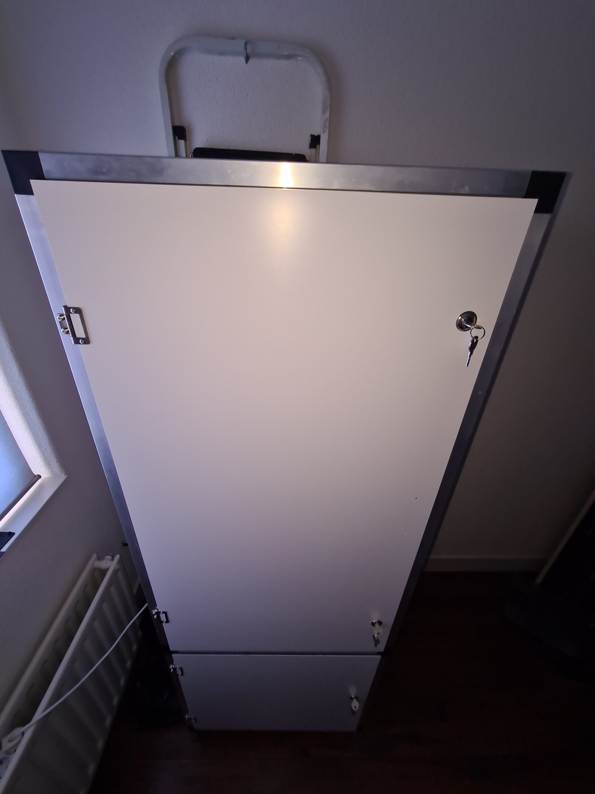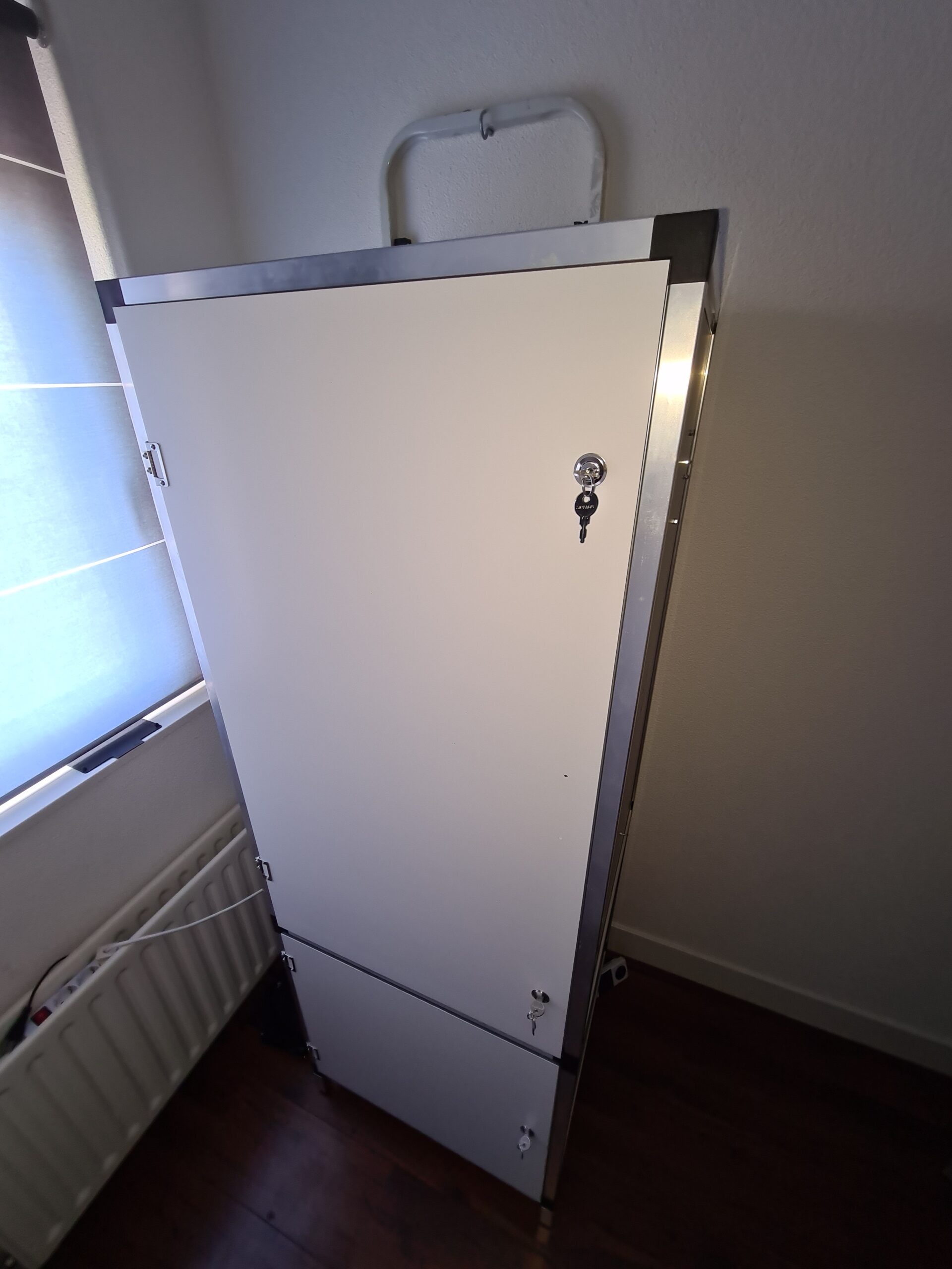 Ik had de deuren met een uurtje vervangen, alleen heb ik besloten de handgreep niet te monteren. Ik heb dit niet gedaan omdat de kweekkast in een kleine kamer staat waardoor deze net in de weg zat en een ander kast niet open kon. De deuren sluiten goed en er hoefde niets afgesteld te worden. Het is nu wel stukken makkelijker geworden om plantenpotten de kast in en uit te krijgen. Ik hoef daarvoor niet meer zoals voorheen de kastdeuren eruit te halen als mijn pot iets te groot is voor de opening.