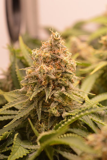 Waarom ik dat denk zie je misschien zelf ook wel. Overal in de kweekkast groeien grote compacte toppen met opgezwollen zaadzakjes en bedekt met een zware witte laag trichomen. Zelfs onder het bladerdek is alles hard en compact en er zit eigenlijk geen enkele fluffy of luchtige top tussen.