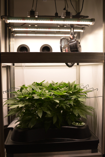 Ik moet dus nog even geduld hebben voor wat de bloei betreft. Ondertussen ligt de watertemperatuur rond de 21 graden als de lampen aan staan, en rond de 19 graden als het donker is in de kast. De pH-waarde hou ik zoveel mogelijk rond de 5,8 en de EC-waarde laat ik deze ronde wat lager. In mijn vorige ronde hield ik de aanbevolen hoeveelheid op de flessen van GHE aan maar deze keer kijk ik meer naar de EC-waarde. Die is momenteel nog steeds 1,4 en dat is meer dan genoeg, aan de plant te zien.