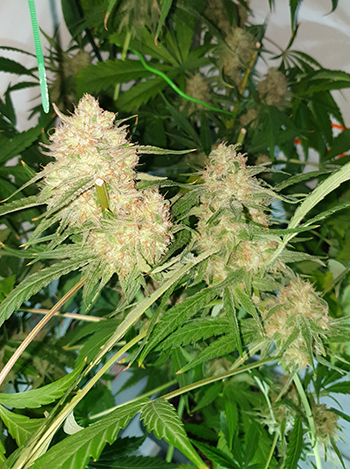 De achtste bloeiweek zit erop voor Willies Liberty Haze planten. Omdat de bovenste toppen verder zijn dan de ondersten, besluit Willie om die maar vast te oogsten, terwijl de rest nog even mag doorbloeien. De voorraad is voorlopig dus weer aangevuld in huize Wietman, en ziet er heerlijk uit!