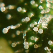 Om het goede moment van oogsten nauwkeurig te kunnen bepalen kijken we met een microscoop of juweliersloep naar de harskristallen op de toppen. Deze kristallen maken in de oogstbare periode een ontwikkeling door waarbij ze eerst helderkleurig, dan wittig en troebel en vervolgens amberkleurig worden. Aan de hand van de kleur van deze harskristallen, ook wel trichomen genoemd, bepalen kwekers het stadium waarin de wiet zich bevindt om zonodig te kunnen oogsten. Hieronder zie je de drie verschillende stadia van de trichomen.