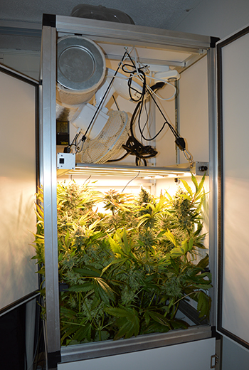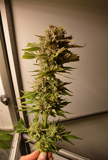 Er is eigenlijk maar één smetje, en dat is een rotte plek in een van de dikste toppen die vooraan in de kast groeide. Even was ik bang dat ik nog meer rotte plekken zou tegenkomen maar dat was gelukkig niet het geval. De aangetaste wiet heb ik weggeknipt. De rest van de top ligt nu op een droogrekje te drogen.