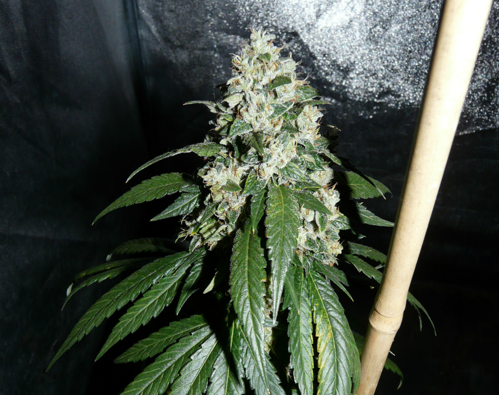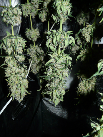 Deze planten hebben wel iets meer blad en knipwerk dan bijvoorbeeld de Chocolope, maar de kushgeur is exeptioneel! Ik kan niet wachten om de wiet te roken, maar doe dat uiteraard wel. Ik heb de planten een dikke 10 weken verzorgd en ga de boel nu natuurlijk niet ophaasten bij het drogen. Gewoon 10 dagen laten hangen met alleen de afzuiger zachtjes aan, dat is mijn advies. Om te checken of de wiet al droog genoeg is, kun je even een paar takjes proberen te breken. Als ze daarbij met een duidelijk hoorbare ‘knak’ breken, dan is het goed en kun je de toppen in potten stoppen om ze te laten curen.
