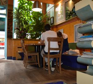 Als ik klaar ben met de buitenfoto’s stap ik naar binnen in de shop die recentelijk nog een metamorfose heeft ondergaan. Ik ben er voor de verbouwing helaas nooit geweest dus ik weet niet hoe het er toen uitzag, maar nu is het werkelijk een plaatje van een coffeeshop. Er is veel licht, ondanks de grote groene planten voor het raam die je een natuurlijk beschermend gevoel geven. Planten zorgen bij mensen altijd voor ontspanning. En dat geldt echt niet alleen voor wietplanten als jullie begrijpen wat ik bedoel.