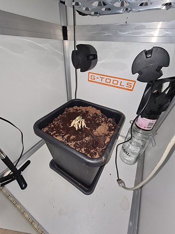 Zoals ik vorige week vertelde, heb ik de Space Bucket (een oude regenton) verruild voor de CNNBS G-Kit met verhogingsset. Maar in deze kast ging het deze week helaas niet veel beter. Ook het plantje dat hier stond heeft de week helaas niet overleefd. Ook hier liep de temperatuur in kast te hoog op. Dit bleek ook voor deze jongedame te warm. Ik hoop dat dit voor de toekomst is opgelost doordat ik de kasten nu in twee aparte kamers heb gezet. Dit was sowieso nodig in verband met het kweken op zonne-energie project.