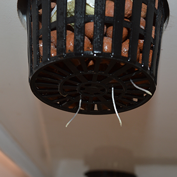 Zie je al wat het probleem is? De groei is gestagneerd, de blaadjes richten zich naar beneden en op de worteltjes zit een vies bruin slijm. Het is maar goed dat ik dankzij het DWC hydrosysteem nu ook de wortels kan bekijken, al had ik dit bruine slijm in aarde natuurlijk niet gehad. Maar goed, het moge duidelijk zijn dat het bruine slijm niet in mijn waterreservoir thuishoort, en de wortels enigszins verstikt.