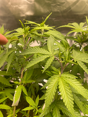Twee maanden geleden begon Collin’s kweekavontuur met Cookies Gelato en Critical. De planten hadden het in het begin wat warm, maar over het algemeen groeiden ze goed. Totdat de voeding uit de grond opraakte, de bladeren begonnen te vergelen en de stammen paars werden.