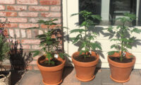 Beleef het buitenwietseizoen mee met 420 Dutch Highlife. Hij kweekt vijf medicinale wietplanten in grote 100 liter speciekuipen in zijn tuin.