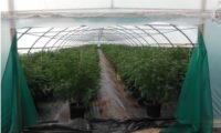 Bertjes ’top terps’ planten worden zo langzamerhand volwassen. Omdat het verschillende nieuwe soorten zijn controleert hij het geslacht van alle planten.