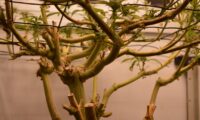 Maarten heeft een mooie autoflower gekweekt die nu paars begint te worden. Heeft de plant een voedingstekort of zit de bloeifase er gewoon op?