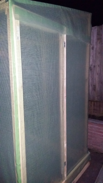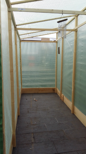 Arsenalen aan nietjes vlogen door de lucht. Blaren ontstonden, maar het geheel kreeg toch snel vorm en de rust keerde terug. Het resultaat is bevredigend. Een gesponsorde stapel pallets van een lokale pallet-boer was meer dan welkom voor een mooie opgehoogde bodem. Deze bodem zorg er natuurlijk voor dat onze vriendinnetjes droge voetjes houden en lekker kunnen afwateren. Ook zullen ze door de verhoging, minder last hebben van de koude stenen ondergrond.