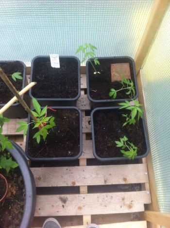 De eerste dames die gezaaid zijn als test, staan al ondergebracht in ons knusse onderkomen. Rekening houdend met de nog altijd dreigende nachttemperatuur, worden er wellicht op zeer korte termijn maatregelen getroffen. Mochten de weergoden ons niet gezind zijn. Natuurlijk is er maar beperkte ruimte en zullen we ons toch aan de 5 planten regel gaan houden, min of meer… Terwijl de kas beschutting biedt en al aardig de temperatuur verzorgd voor de Early’s, staan de andere baby’s tot op 2 na allemaal 1 dag boven de grond. 4 Autoflowers waarvan één zich nog niet heeft laten zien, en 5 volwaardige kasknallers waarvan er eveneens eentje nog niet boven is.