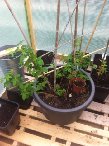 De framboos Peter Frampton, vernoemd naar de Engelse artiest, verblijft als testcase in de kas.