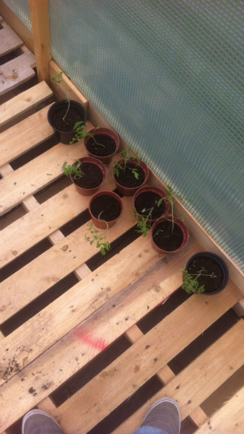 Om nog even naar over te schakelen naar balkonië; de verstekeling heeft het ogenschijnlijk zwaar onder de minimale zonuren in de ochtend. Wij salueren dan ook voor de vorst die de komende dagen op komst is. De oude aarde bracht onder de tomaten ook nog wat verassingen mee…
