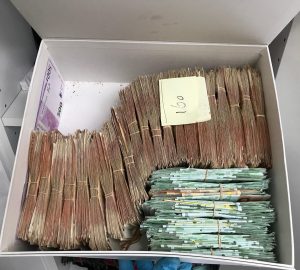 ‘De geur was echter zo sterk dat dit verhaal niet plausibel leek. Bij doorzoeking van de woning bleek het verhaal over de ‘spacecake’ inderdaad niet te kloppen. Op meerdere plekken in het pand troffen wij grote hoeveelheden hennep aan. Ook vonden wij ruim drie ton aan contant geld en verschillende waardevolle goederen, zoals dure horloges en andere waardevolle sieraden.’