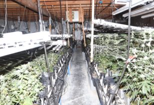 De autoriteiten troffen o.a. ‘lighting, ballasts, duct work, chemicals, charcoal filters and other items associated with a large-scale growth operation’ aan. Kortom, de hele rimram die je nodig hebt voor goeie binnenwiet. Al wil het spul buiten in de woestijn ook best groeien mits je er water aan toevoegt.