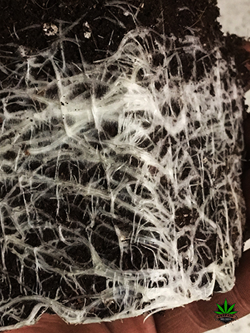 We lieten de zaailingen gedurende 12 dagen opgroeien onder 22 uur licht en 2 uur donker. Toen het tijd was om de planten te verpotten stuitten we de prachtige witte wortels. Dat de wortelontwikkeling zo goed is verlopen, hebben we vooral te danken aan BioTabs en BiosmoZ. Via onze bio-sister Zuzana ontvingen we een BioTabs startpakket. We gebruikten daaruit de Startex, Mycotrex en Bactrex en mengden dat door ons eigen mengsel van 2 delen lightmix (aarde) en 1 deel kokos. Hieronder zie je de resultaten na de eerste 12 dagen.