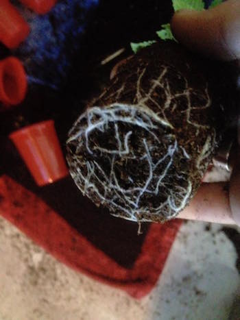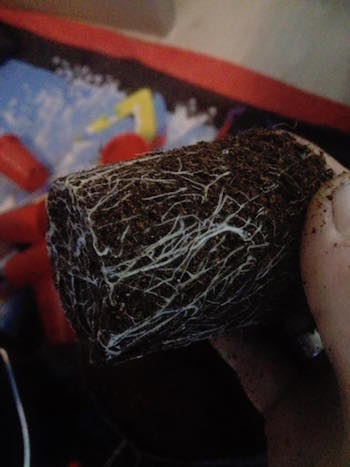 We zijn deze ronde zoals ik eerder vertelde reeds gestart. In het begin van gaven we de planten naast de voeding ‘microbes’ mee. Vanaf de eerste waterbeurten kregen onze kleine ladies dus ‘Mammoth Microbes’, wat de fotosynthese van de plant zal bevorderen. Hieronder zien jullie de wortels van een 10 dagen oude zaailing die enkel de microbes kreeg en verder niks, dus oordeel zelf.