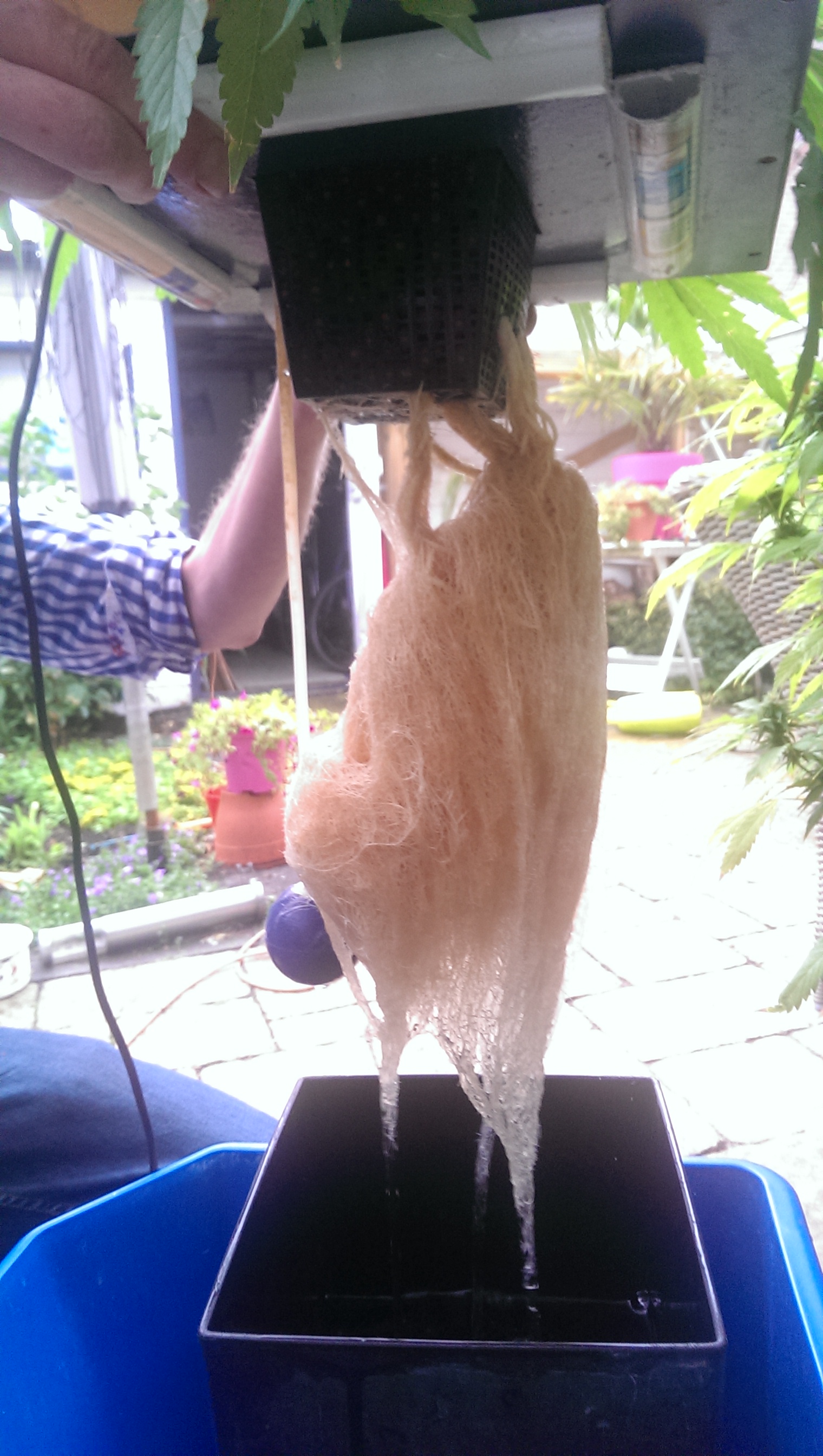 Deze week heb ik het water in de bubble bucket weer eens verschoond. Niet omdat het vies was, maar ik wilde de EC waarde verhogen naar 1,8. Omdat wortels zelf ook zouten afgeven, en ik een juiste EC waarde wil hebben, heb ik de bubble bucket dus van nieuw water voorzien.