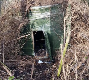 Aan zijn/haar/hun buitensport activiteiten – uitgraven, met takken slepen, stroomvoorziening aanleggen en dan natuurlijk nog sjouwen met potten, zakken aarde, lampen, water en planten – kwam dinsdagochtend een ongewenst einde door toedoen van reeds genoemde ‘oplettende wandelaar’.