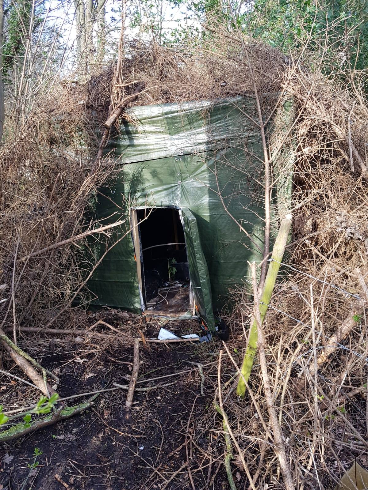 Aan zijn/haar/hun buitensport activiteiten – uitgraven, met takken slepen, stroomvoorziening aanleggen en dan natuurlijk nog sjouwen met potten, zakken aarde, lampen, water en planten – kwam dinsdagochtend een ongewenst einde door toedoen van reeds genoemde ‘oplettende wandelaar’.