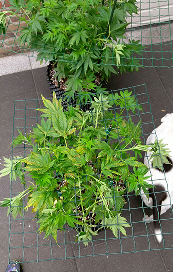 De bloei komt eigenlijk ook wel goed uit want ik had me voorgenomen om mijn planten rond de eerste week van september te kunnen snoeien. Om deze reden ben ik ook gister begonnen met het verduisteren van mijn White Russian, dit doe ik door er een oude barbecue-hoes overheen te trekken tot het buiten donker is. Op deze manier creëer ik een 12/12 lichtcyclus zodat deze planten weldra ook zullen beginnen aan hun bloeiperiode.