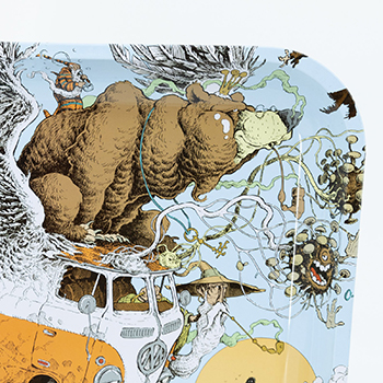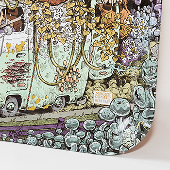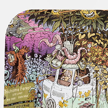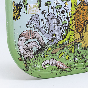In de wereld van Mossy leeft zo’n beetje alles. Zelfs bloempotten, gieters en Volkswagen busjes kijken dan ook met een vrolijke (en meestal knetterstonede) blik uit hun ogen. En in deze stijl heeft Mossy Giant sinds kort dus zeven betoverende rolling trays uitgebracht, om met een jointje erbij in te verdwalen. Hoe langer je ernaar kijkt, hoe meer details je zult ontdekken.