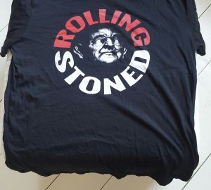 Om onze verjaardagskoorts met jullie te delen, verloten we 5 unieke T-shirts van RollingStoned. Dubbelzijdig bedrukt, wat er dus zo uitziet dan: