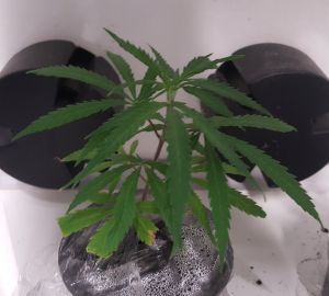 Na het verpotten heb ik in iedere pot een half litertje afgezuurd water gedaan. Dit is alles wat ze voorlopig zullen krijgen. De LED kweeklamp staat nog steeds alleen op de groeistand en is door de hogere potten wel een stukje mee omhoog gegaan. Omdat de twee grootste dames toch al wat voorlopen op de twee andere, heb ik deze planten ook gefimd. Hopelijk krijgen ze nu een fiks aantal mooie nieuwe scheuten. Je zult het volgende week maandag zien, in de volgende update. Ik denk dat ze dan wel weer een flink stukje gegroeid zullen zijn.