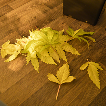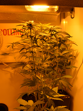 Ik heb afgelopen week – afgezien van het weghalen van wat gele blaadjes onderaan – niets meer aan training gedaan in mijn kweekkast met HPS. De bloei is nu echt goed doorgebroken, dus dan is de tijd van trainen voorbij. Alleen als het echt niet anders kan en de toppen bijvoorbeeld in de lamp gaan groeien, zal ik ze misschien nog eens ombuigen maar dat doe ik liever niet. En zoals het ernaar uitziet is dat deze ronde ook niet nodig. Mijn Night Queens groeien bijna niet meer en de HPS lamp kan nog een stukje omhoog.
