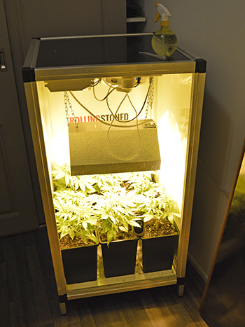 Wat de bruine stippen ook zijn, ik zal de omstandigheden in de kast moeten aanpassen. Op dit moment hangt mijn ventilator bij gebrek aan plekken om hem aan op te hangen aan het plafond van de kast. Hij blaast van boven op de lamp en de planten naar beneden, en dit is niet optimaal. Vrijwel alle schimmels kun je het beste voorkomen met een goede luchtcirculatie en een lage luchtvochtigheid.