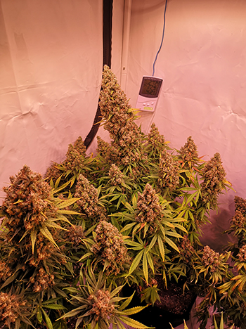 Het uiteindelijke oogstgewicht was fantastisch! Ik heb van de 4 Serious Happiness planten 550 gram droge wiet gehaald. Dat is dus 1,67 gram per Watt en daarmee mijn beste resultaat ooit! Dit is beter dan wat ik normaliter onder HPS kreeg; daar was ik al blij met 1 gram per Watt aan het einde. Mijn conclusie hieruit is, dat de LED-technologie nu eindelijk zover is en daadwerkelijk de HPS kan verslaan. Ik ga zeker verder met de SANlight LED-lampen voor mijn volgende binnenkweek, dus hou ‘m hier op CNNBS!