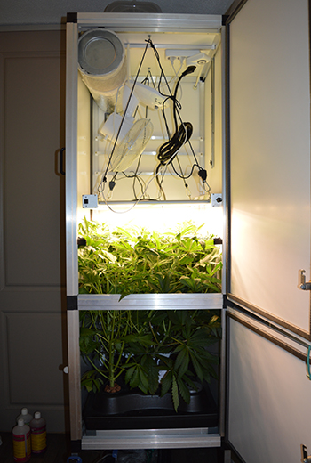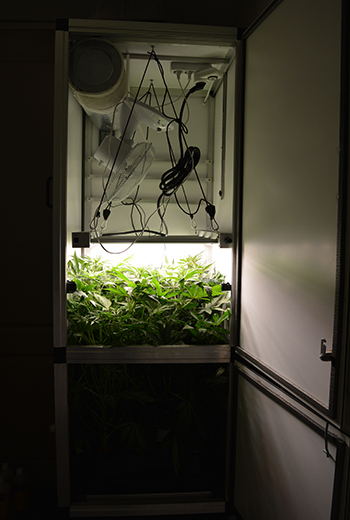 De Seriotica’s beginnen ook steeds sterker te ruiken nu. Als ik de kast openzet ruik ik ze al, en mijn handen plakken van het weggooien van de afgeknipte takken. Dat belooft veel goeds voor de aankomende weken; als de ontwikkeling zich zo voortzet heb ik straks een heerlijke oogst. Maar we juichen zeker nog niet, want dat moet je nooit te vroeg doen.