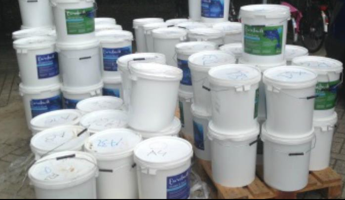 De ontvanger van de megapartij hasj –  land van herkomst nog onbekend, maar wij vermoeden Marokko – was vervoersbedrijf Barsan in de Castorstraat van de Brabantse stad. Daar kwam een 44-jarige man een zending afleveren: een enorme lading emmers (zie kleine foto). Zo veel dat hij het in twee delen deed. Maar na de eerste helft in ontvangst te hebben genomen, vonden de mensen van Barsan hasj in de emmers en belden fluks de politie.