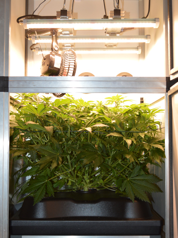 Zoals je op de foto’s hierboven ziet, is de plant nog steeds ontzettend vol en compact qua hoogte. Ik maakte me hier vorige week een beetje zorgen want mijn Sneeze mocht best wat hoger zijn. Ik heb de verwarming in de kamer waar de kweekkast staat daarom maar aangezet, en dat hielp. De extra warmte – het scheelt net een paar graden – heeft mijn Sneeze goed gedaan. Ze komt in haar geheel (inclusief hydrosysteem) nog steeds niet boven de 50 centimeter uit en de lamp hangt nog steeds zo laag als die kan, maar de takken klimmen wel langzaam hoger.