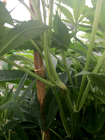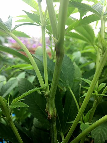 Een paar dagen na het supercroppen zijn de stammen hersteld, en de takken die onder de plek van het supercroppen groeien een stuk groter geworden