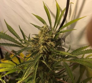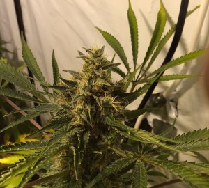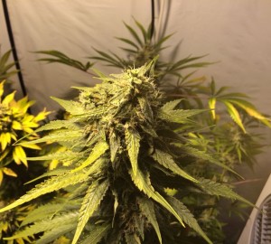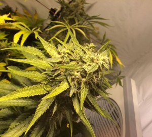 Mijn plantjes zijn thuis voorspoedig doorgegaan met bloeien, en de toppen worden vetter en vetter en barsten werkelijk van de kristallen. Ik was bij mijn terugkomst echt verbaasd om te zien hoe ver de dames nu al zijn! De oogst nadert nu, na 59 dagen in de bloei en sinds dag nummer 52 geef ik daarom alleen maar water, een geen druppel voeding meer.