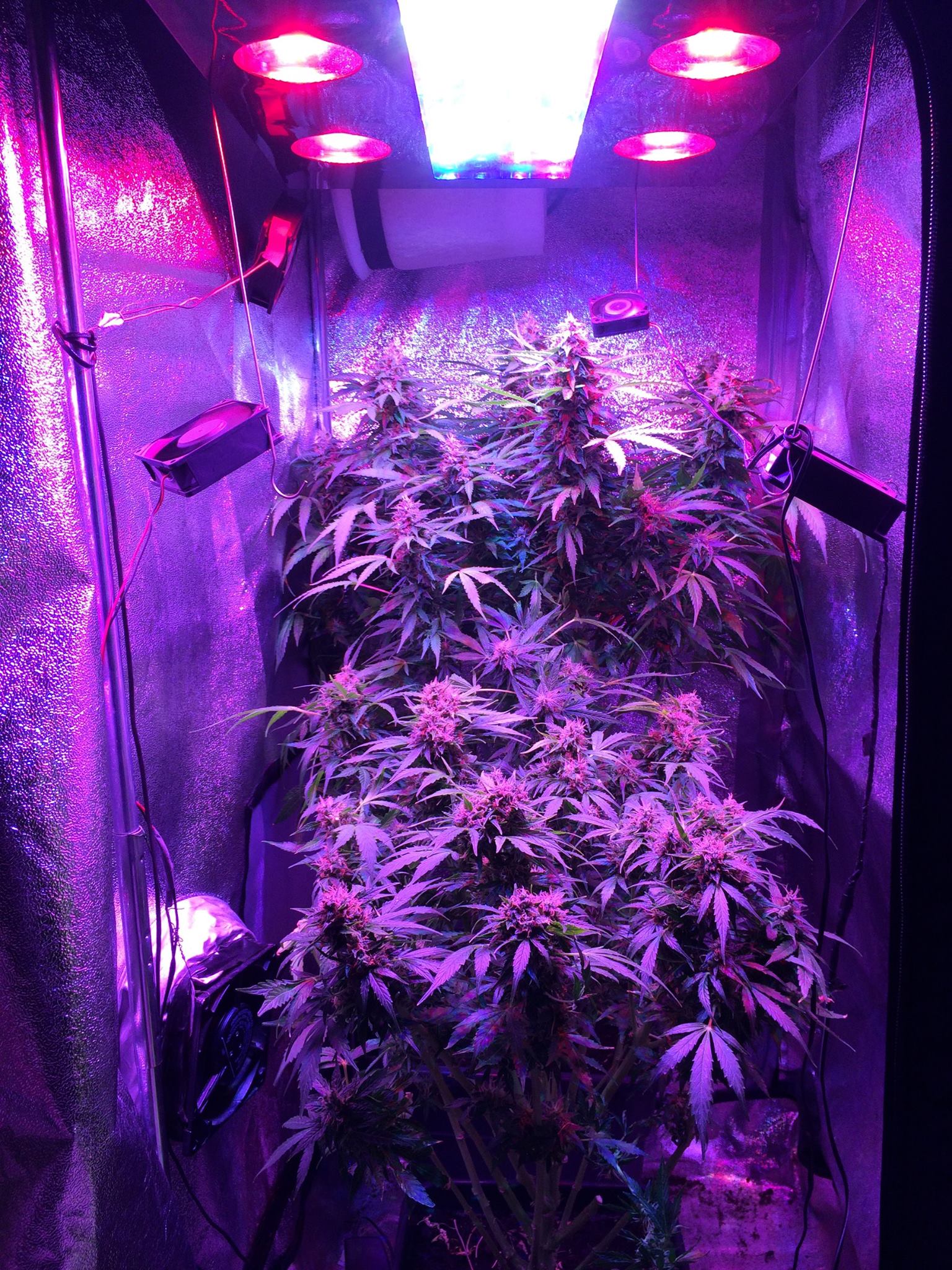 Gelukkig had ik de tripsen snel ontdekt en kon ik ze met één biologische spray om zeep helpen en ook de toprot is weggebleven nadat ik de aangetaste buds eruit had geknipt. De extra fans zorgen ervoor dat er nu genoeg lucht door het bladerdek stroomt en de buds blijven dan ook vrij van verdere aantasting.