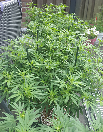 De buitenplanten van onze correspondent in het veld Steve, doen het weer helemaal goed en varen wel bij het mooie zomerweer. Toch is het gek dat de Biddy Early niet, en juist de White Russian wel al in bloei staat. Om de planten gelijk te trekken forceert Steve de bloei door de Biddy Early plant even in het donker te zetten, dan maar zo!