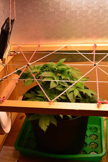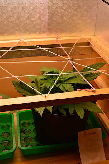 Met de CBD dames gaat het ook goed. Ze beginnen al mooie bladeren te krijgen. Echte indica bladeren met grote brede vingers aan de steel. Ze beginnen ook al een beetje te geuren. Ze komen bijna bij het scrogrek en moet dus van de week ook beginnen met scroggen en dan nu zo als het hoort. Ik heb daarvoor nog een paar filmpjes op youtube opgezocht.