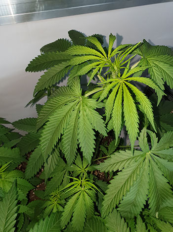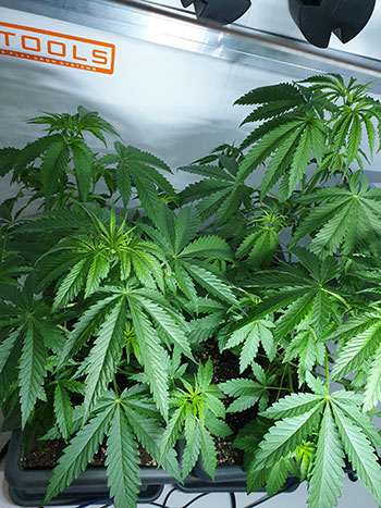 Zoals je kunt zien zijn de wietplanten alle vier mooi groen. Op de foto’s lijken de planten wat slap te hangen maar dat is niet het geval. Het komt omdat ik de foto’s maak wanneer de planten net wakker zijn. Ze zijn op dat moment dus nog wat slaperig van de nacht.
