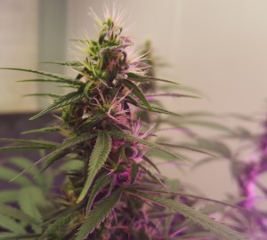 Gelukkig heb ik nog altijd mijn eigen binnenvolkstuintje om tot rust te komen. Een kijkje in de kast stemt me meteen weer een stuk vrolijker. De planten staan nu in bloeiweek nummer zes en vooral de CBD-Kush planten maken al flink wat trichomen aan op de toppen en daar zit de kast werkelijk vol mee 😀