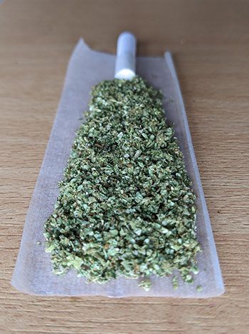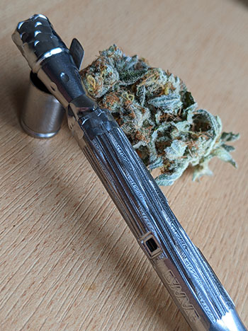 Na de eerste kennismaking via de neus, beginnen we met de zogenaamde dry hit, oftewel een paar trekjes van een pure joint die nog niet is aangestoken. De dry hit van de pure joint is heerlijk en zeer smaakvol; dat belooft veel goeds! Er komen romige geuren naar boven die we bij het ruiken niet direct eruit haalden. Verder is de smaak van de dry hit kruidig, dennen-achtig en licht hazy zoals we bij het ruiken ook al ontdekt hadden. De smaak blijft lang hangen in de mond, wat een hoog terpeengehalte aangeeft.