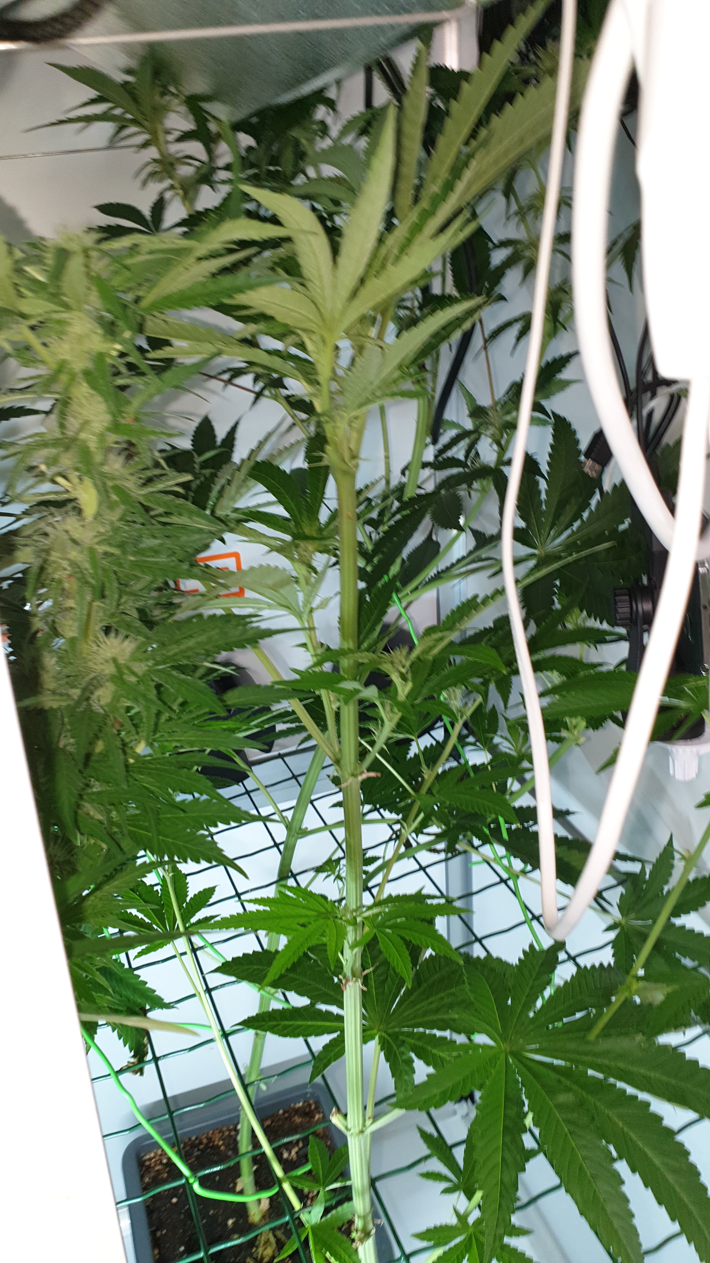 De White Choco Haze is stiekem toch aan het doorgroeien terwijl ze al in bloei staat. Deze dame is nog even 9 centimeter gegroeid. Ik ben van plan deze dame weer onder de lamp te buigen in de komende dagen. Eerst even kijken of ze nu echt uitgegroeid is.