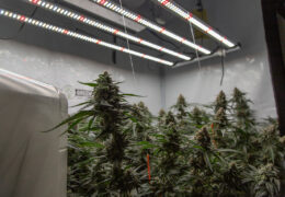 Afgelopen week zijn we dan ook alvast begonnen met spoelen. Vanaf dat moment krijgen de dames alleen nog maar water zonder toevoegingen, met een uitzondering van wat pH-min om de pH-waarde op peil te houden. De reden dat wij spoelen is om te voorkomen dat er veel chlorofyl in ons eindproduct zit, wat een scherpe smaak geeft. Met het spoelen forceren we de planten om de resterende voeding die nog in de grond zit te gebruiken. Met als eindresultaat, wiet die veel zachter is voor de keel en veel beter smaakt en dat is wat we natuurlijk allemaal willen.