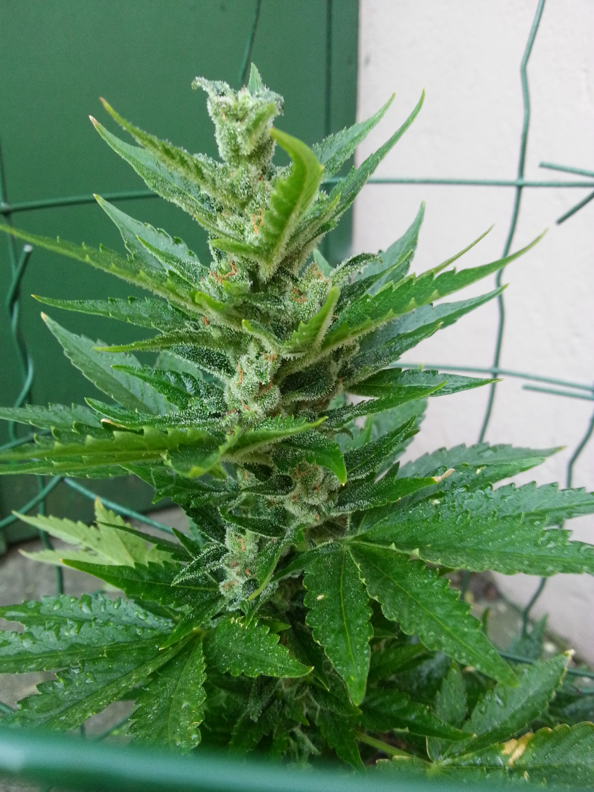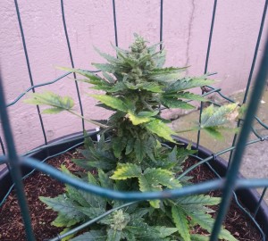 Een dagje later dan je van hem gewend bent meldt onze buitenwiet correspondent zich met een nieuw verslag vanaf het buitenwiet front. Hij is maar wat blij want zijn wietplanten krijgen mooie toppen en hij heeft zelfs al trichomen gesignaleerd.