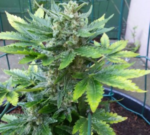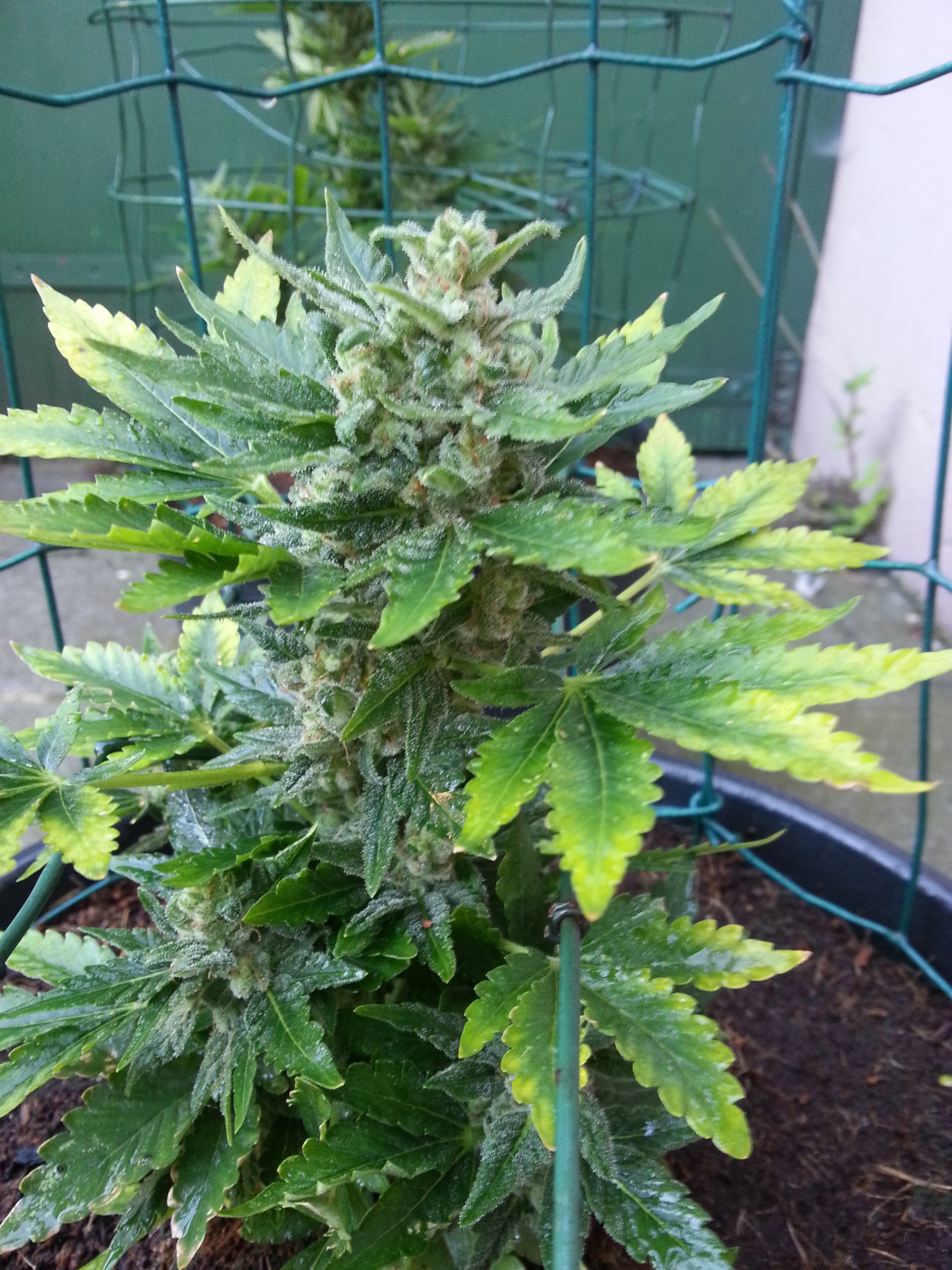 Ja, de White Russians hebben het zwaar te verduren gehad in hun potjes met kokos. Gelukkig stonden ze niet in de aarde, want dan hadden ze zeker last gehad nu. Aarde houdt het vocht namelijk vast waardoor de wortels kunnen verstikken en gaan rotten als het zoveel regent als het heeft gedaan. Ik vrees dat veel buitenkwekers er last van hebben gehad. Mijn White Russians zijn autoflowers en staan al flink in bloei en hoewel ze het zwaar te verduren hebben gehad, hebben ze mooie toppen en ruiken ze heerlijk!