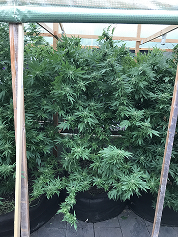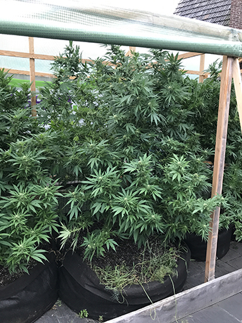 We schakelen over naar buiten waar de dames lekker doorknallen. De verschillen tussen de wietsoorten worden met de dag duidelijker, al zijn alle planten uitgegroeid tot een enorm formaat. We kunnen op dit moment natuurlijk nog geen conclusies trekken maar de Lemon Kush en de Violetta lijken de kar te trekken qua rijpheid op het moment, kijk zelf maar: